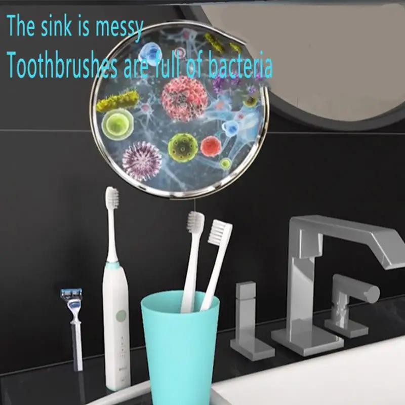 Hot Toothbrush Holder Wall Mounted Toothpaste Dispenser Razor Holder Battery Powered 4 Toothbrush S